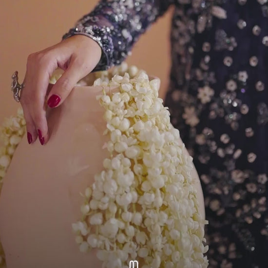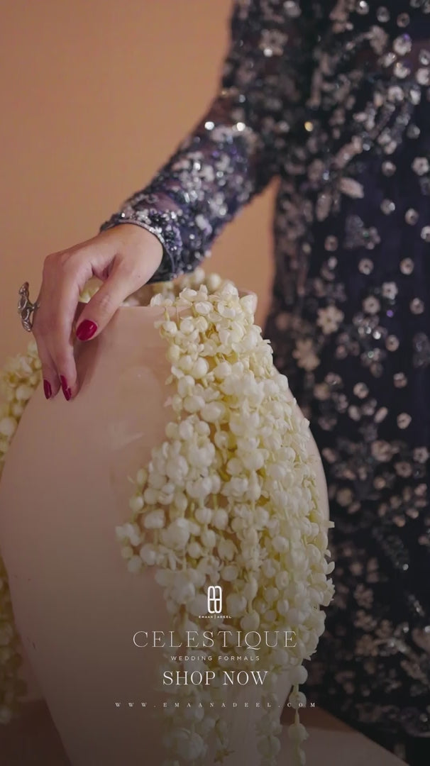 Elysian — a vision of grace in a rich deep blue hue. Adorned with intricate embroidery and delicate embellishments, it reflects timeless sophistication and serene elegance. A masterpiece crafted for moments that deserve to be unforgettable.