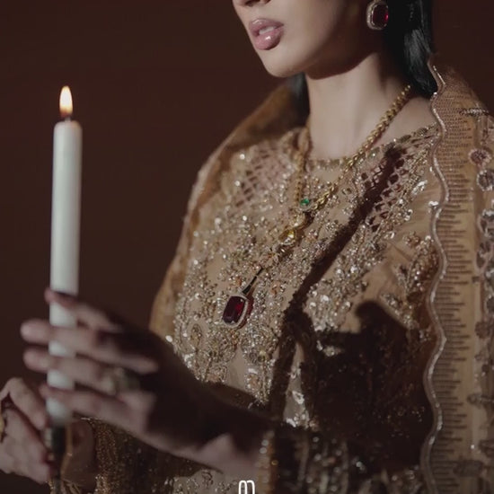 Radiance ignites in Ember, a luminous ensemble in a deep yellow shade. Adorned with intricate embroidery and delicate embellishments, it embodies warmth, grace, and timeless artistry. A statement piece crafted to shine in moments that matter most.