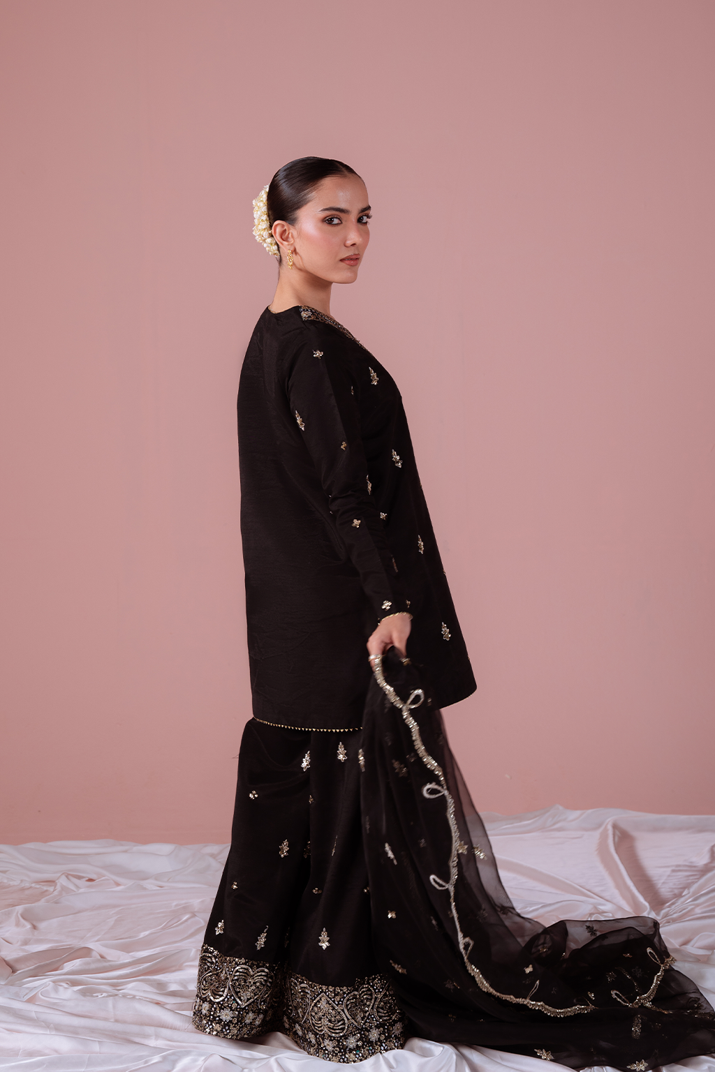 Premium Raw Silk Embroidered Front. Premium Raw Silk Embroidered Slevees. Premium Raw Silk Fabric For Back. Organza Embroidered Dupatta. Premium Raw Silk Embroidered Trouser. Premium Raw Silk Embroidered Trouser Patch.